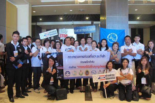 คณะผู้บริหารการท่องเที่ยวแห่งประเทศไทยนำโดย นางสมรัก คำพุทธ รองผู้ว่าการด้านบริหารและพนักงานรวม 40 คน เข้าร่วมงาน วันต่อต้านคอร์รัปชัน 2558 ภายใต้แนวคิด Active Citizen พลังพลเมือง...ต่อต้านคอร์รัปชัน ในวันที่ 6 กันยายน 2558 ณ โรงแรมเซ็นทาราแกรนด์และบางกอกคอนเวนชั่นเซ็นเตอร์ แอท เซ็นทรัลเวิลด์ กรุงเทพฯ ร่วมเดินรณรงค์และรับฟังการปาฐกถา จากพลเอกประยุทธ์ จันทร์โอชา นายกรัฐมนตรี |